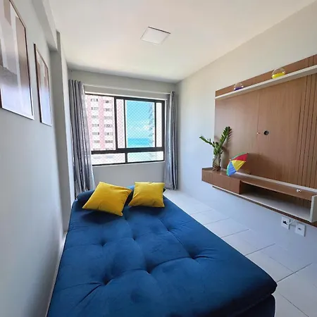 The 55 m^2 Candeias Beach - Vista E Local Maravilhosos Recife apartment is also located approximately a 5-minute walk from Nova Orla. Guests can lounge by a private swimming pool before taking a cooling dip.